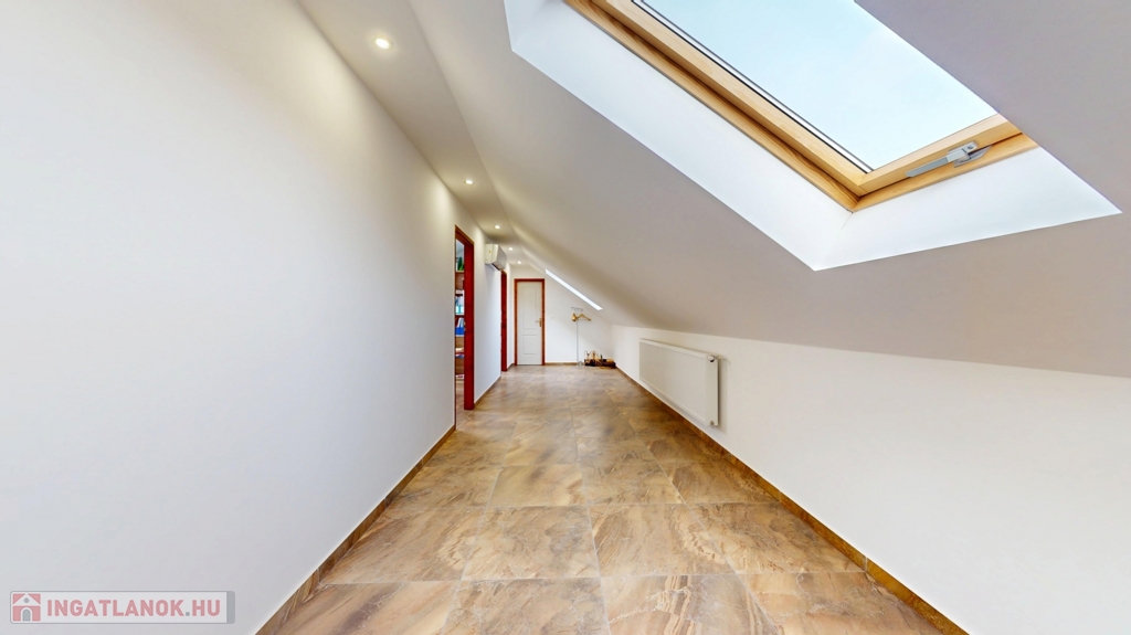 A tetőtér világos, tágas, könnyen alakítható lakótérré, irodává vagy szolgáltató helyiséggé.