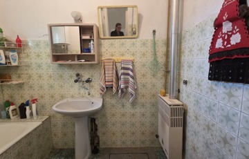 Egyéb helyiségek: kerámia vagy PVC (A burkolatok 40 éve még divatosak voltak – ma már inkább nosztalgikusak. Az új tulajdonos ízlésére vár a megújulás.)