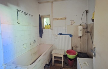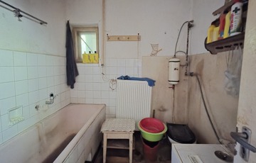 Az ingatlan teljes felújítást igényel, viszont a szerkezeti adottságai lehetővé teszik akár emelet ráépítését is, de leginkább hátrafelé bővíthető. A jelenlegi elrendezés három szobát és egy nappalit foglal magában, két külön bejárattal, így akár két generáció számára is ideális lehet.